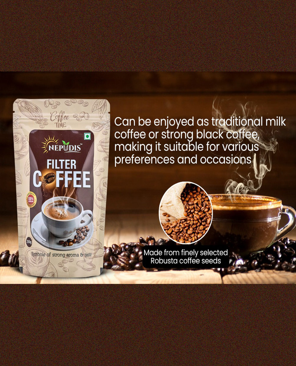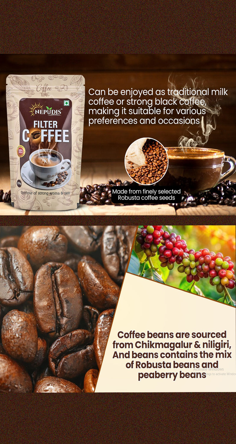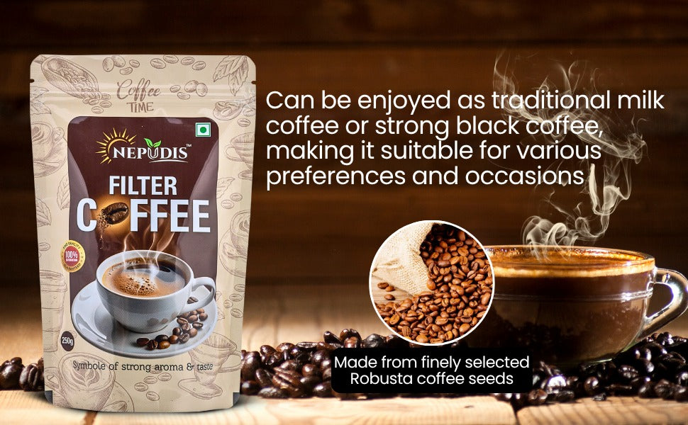 Discover the pure taste of tradition with Nepudis premium products — from rich, aromatic coffee and soothing tea to wholesome dry fruits, nutritious millets, and authentic spices. Carefully sourced, hygienically packed, and sealed with freshness, every Nepudis product brings you nature’s goodness in its most genuine form.