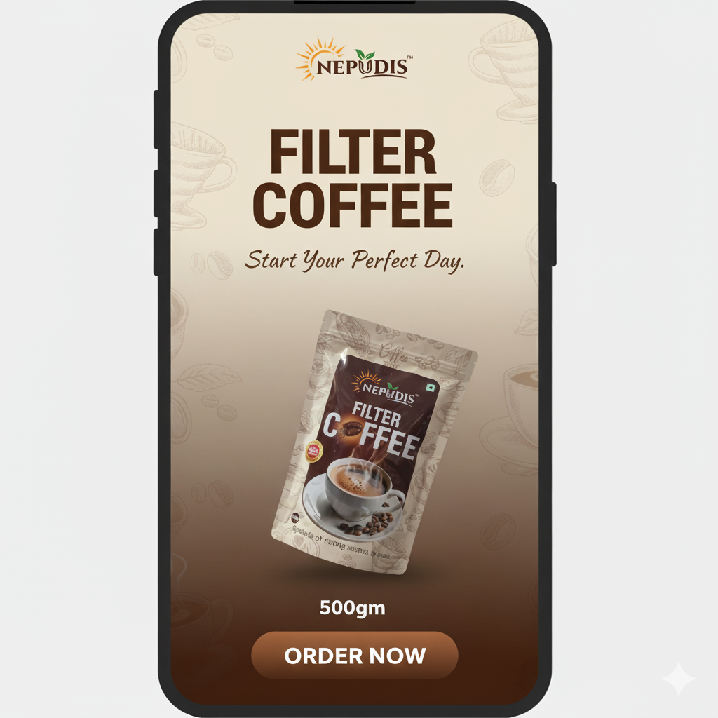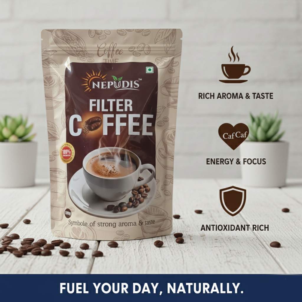 Crafted for those who love a strong, full-bodied cup, Nepudis Coffee brings comfort, energy, and heritage together in every sip. Whether you're starting your day or taking a relaxing break, the taste of Nepudis lingers—nostalgic, satisfying, and proudly Indian.